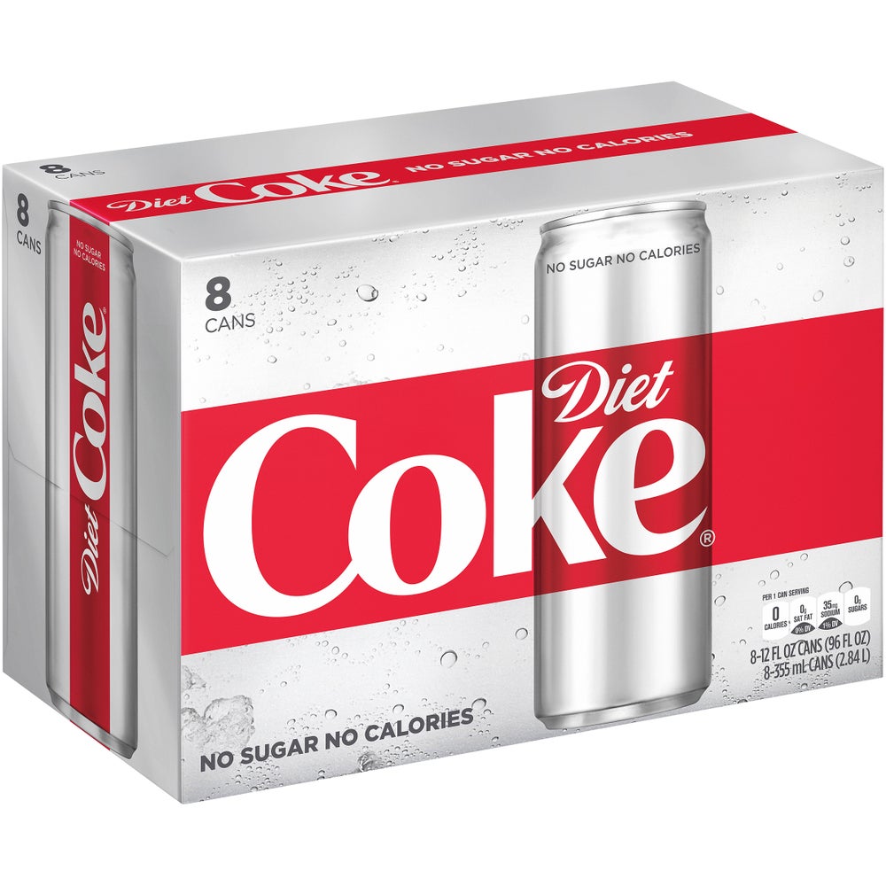 Diet Coke Diet Cola Soft Drink, Can, 12 Fluid Ounce, 8 Ct Package, 3/Case