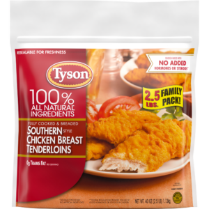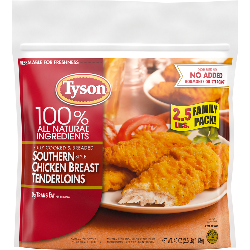 Tyson Breaded Southern Style Tenderloins Chicken, Fully Cooked, 40 Oz Bag, 8/Case