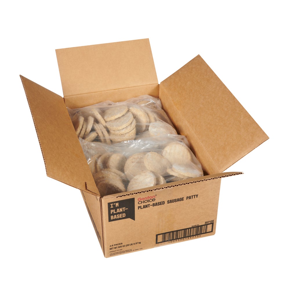 Gordon Choice Plant Based Sausage Patties, Frozen, 5 Lb Bag, 4/Case