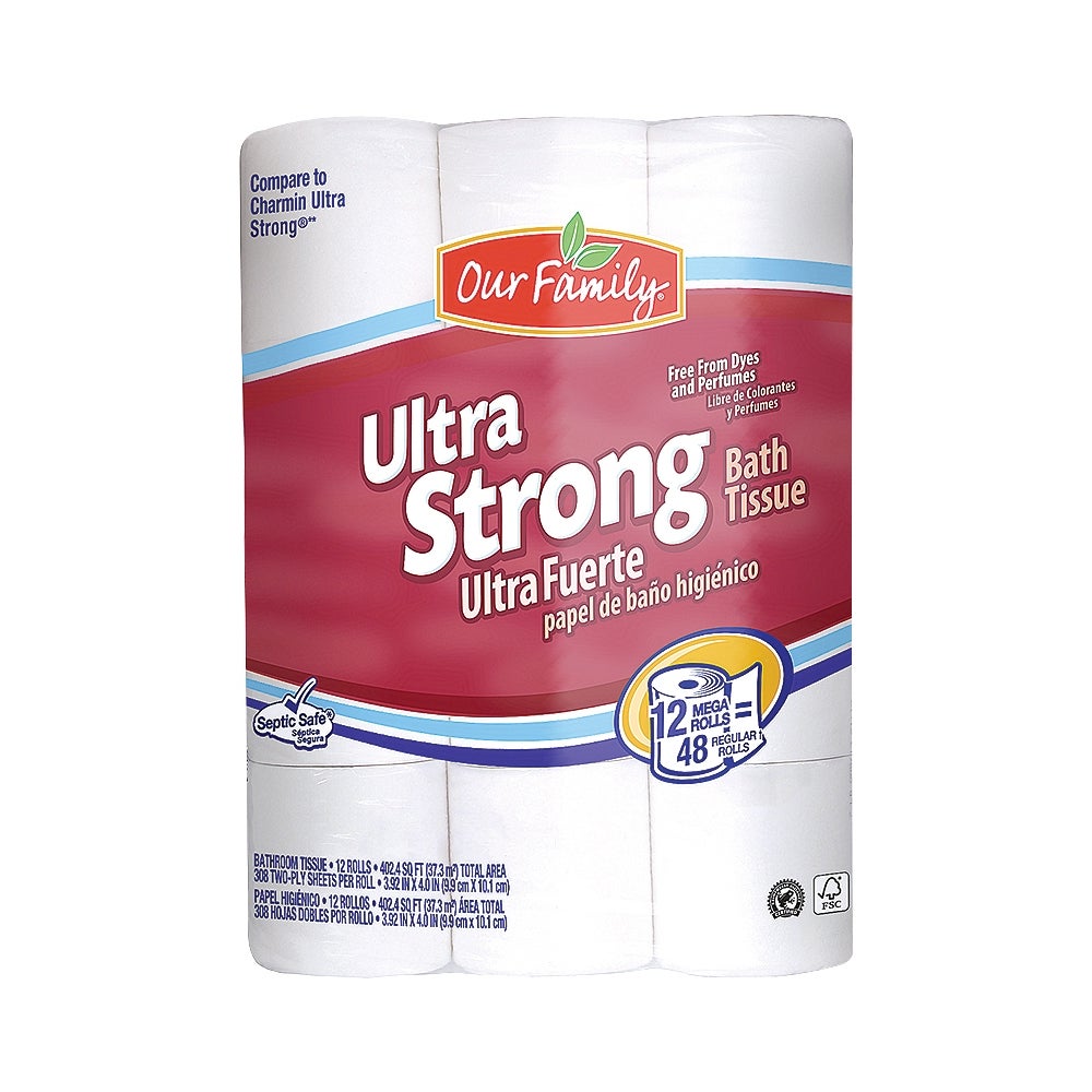 Our Family Ultra Strong Mega Roll Bath Tissue, 4/Case