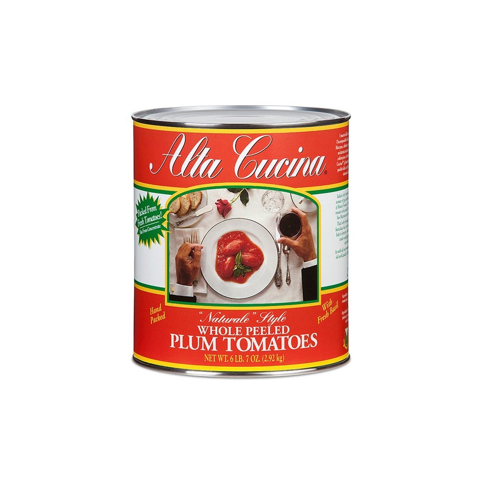 Alta Cucina Whole Peeled Plum Tomatoes, with Basil, in Juice, Fancy, #10, 10 Can Sz Each, 6/Case