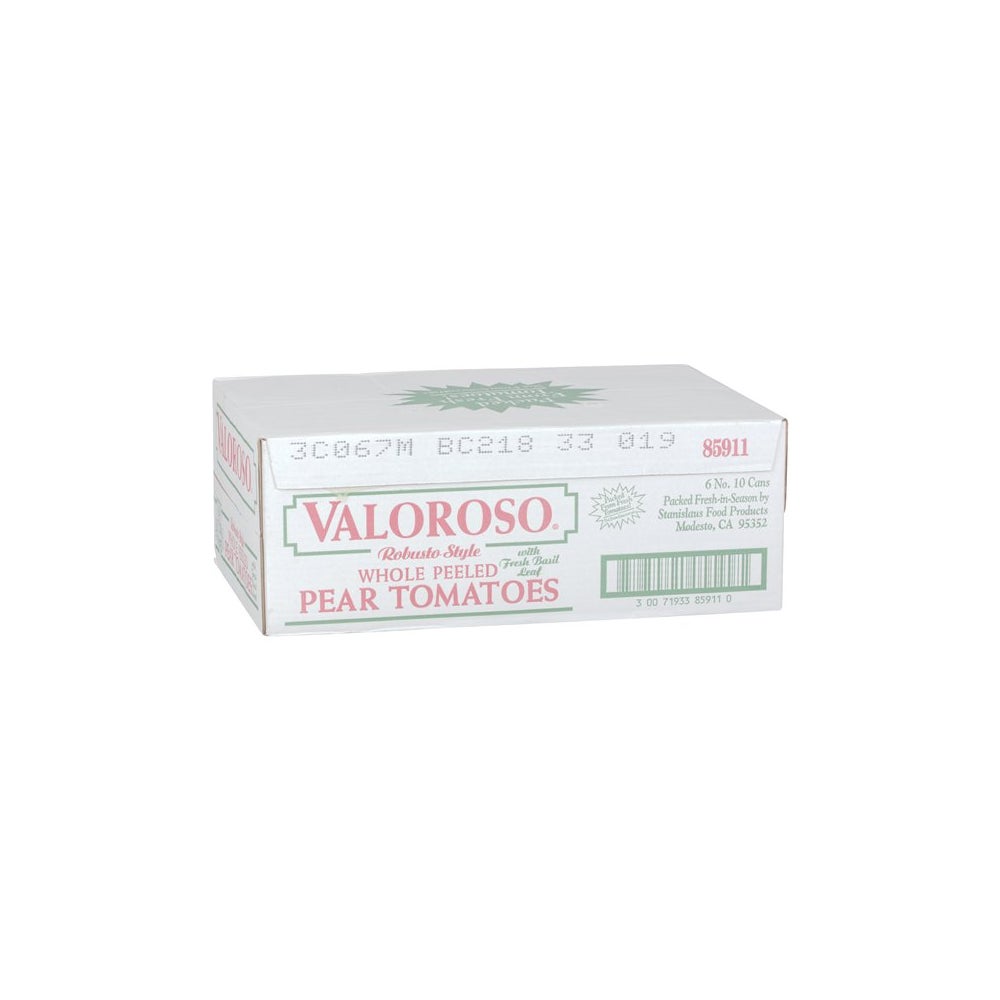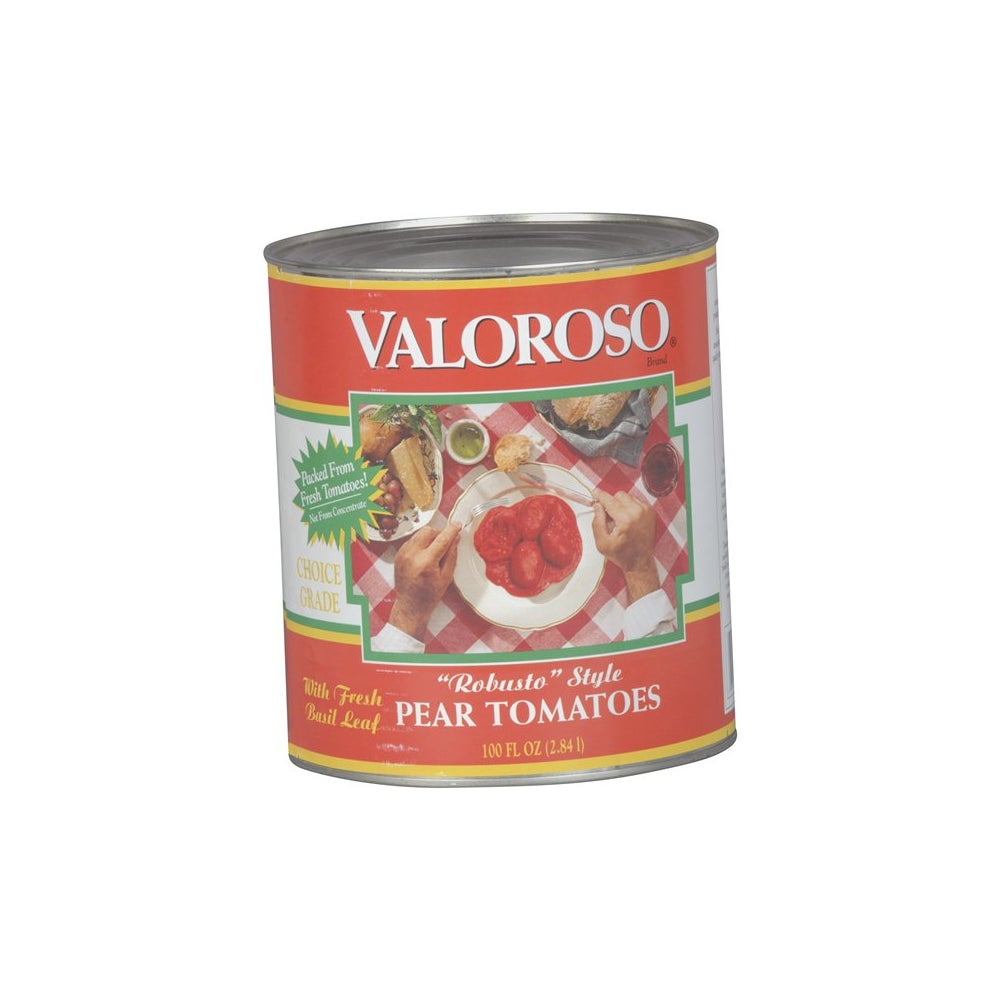 Valoroso Whole Peeled Pear Tomatoes, with Basil, Fancy, #10, 10 Oz Can, 6/Case