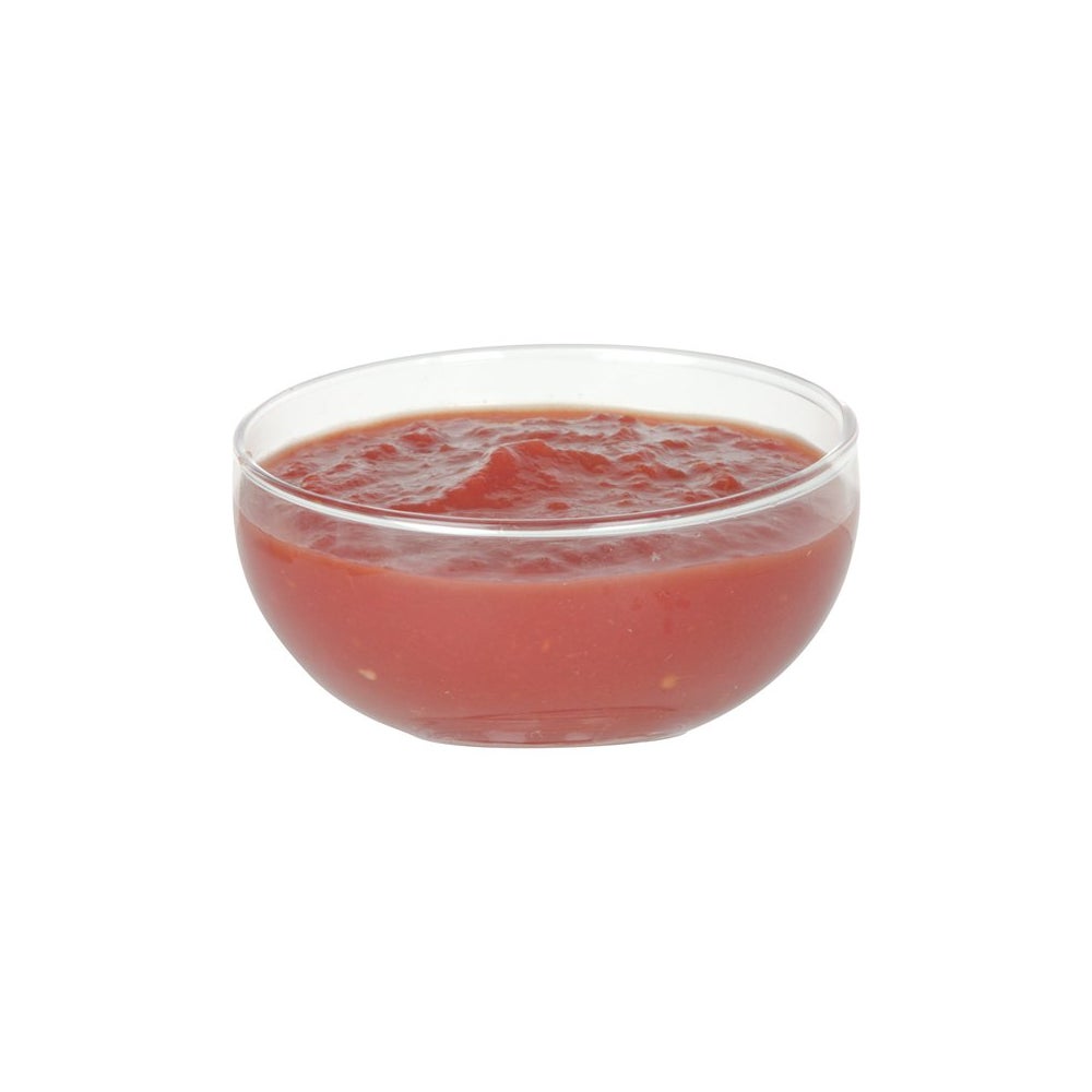 This puree is made from chunky, fresh-ground, peeled tomatoes. It has a sweet, fresh flavor and is suitable as an ingredient in sauces, soups, and stews.