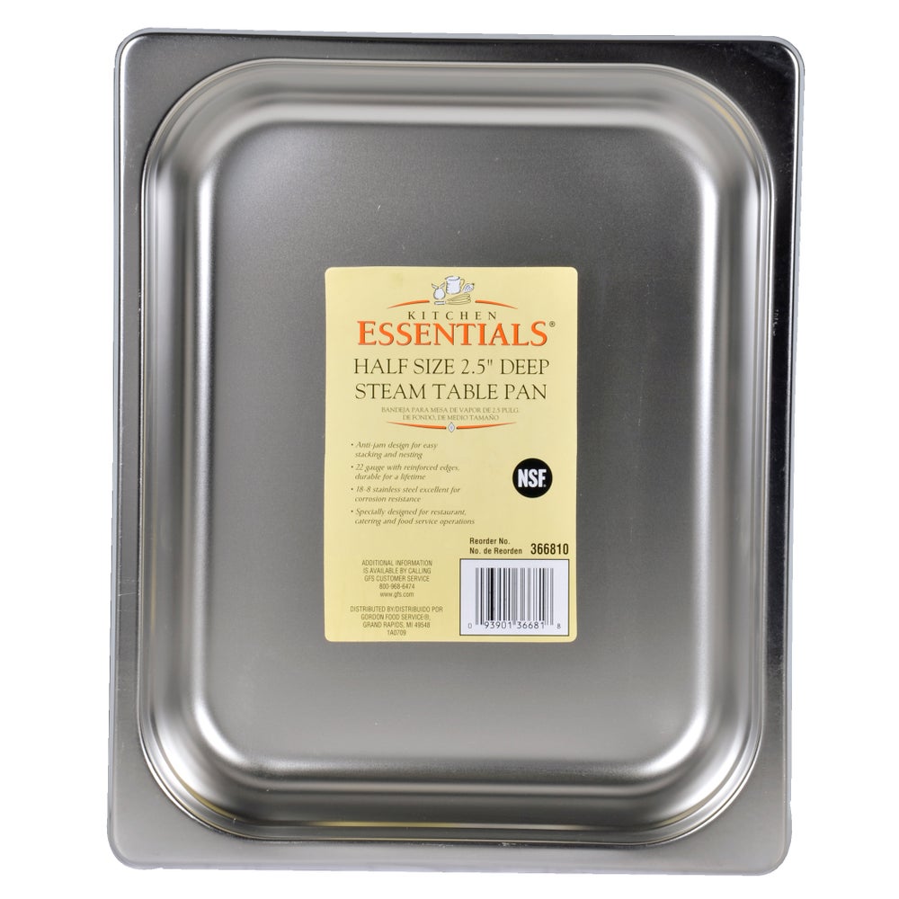 Pan, Steam Table, Half-Size, 12.75 x 10.38 Inch, 4 Quart, 2.5 Inch Deep, Stainless Steel