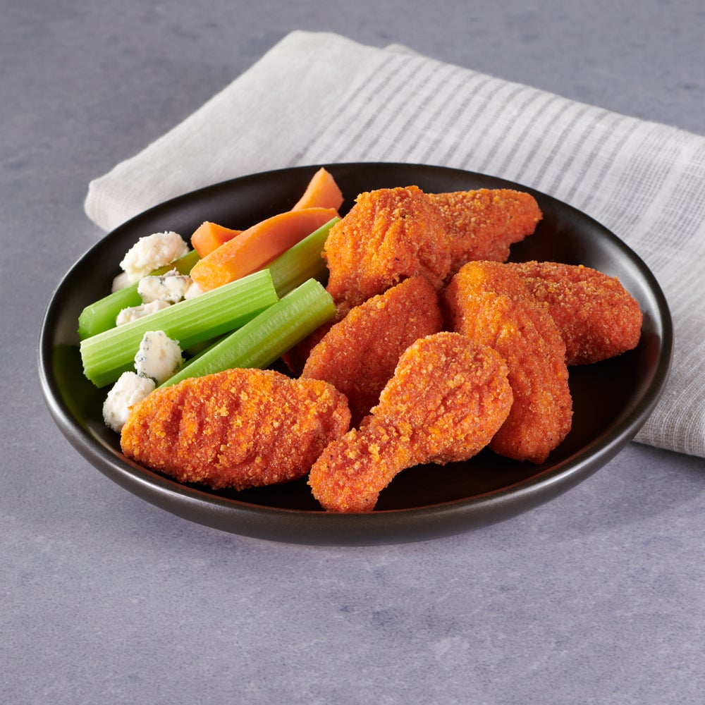 - Our buffalo cauliflower wings are the perfect way to add some excitement and flavor to your day. And with no meat and a gluten free breading, you can feel good about every bite.