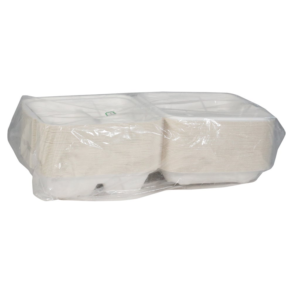 Earthchoice 9 x 9 Inch Molded Fiber 3 Compartment Containers, Natural, Hinged, PFAS Free, 75 Ct Package, 2/Case