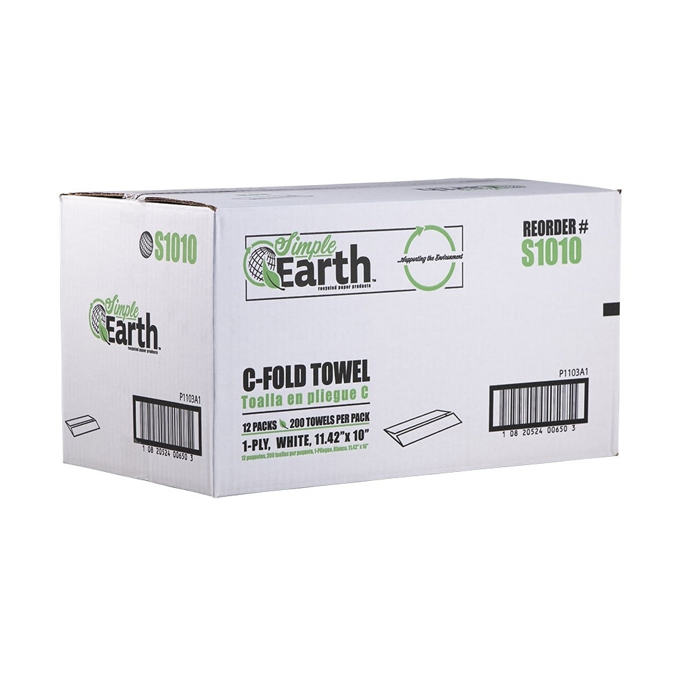 Simple Earth C-Fold Hand Towels, White, 11.42 x 10 Inch, 2400 Ct Package, 1/Case