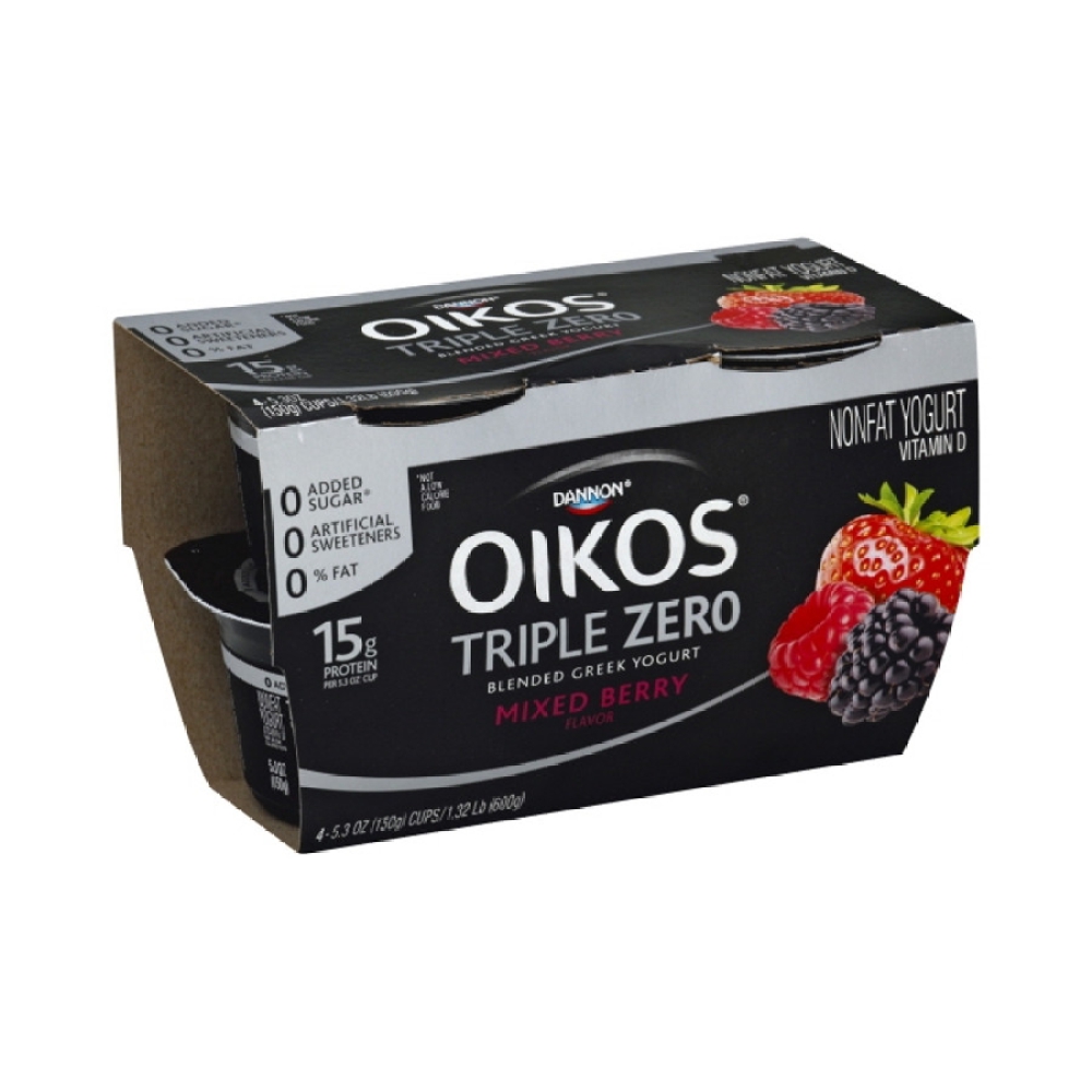 • Dannon Oikos Triple Zero Greek Mixed Berry Yogurt | Packaged