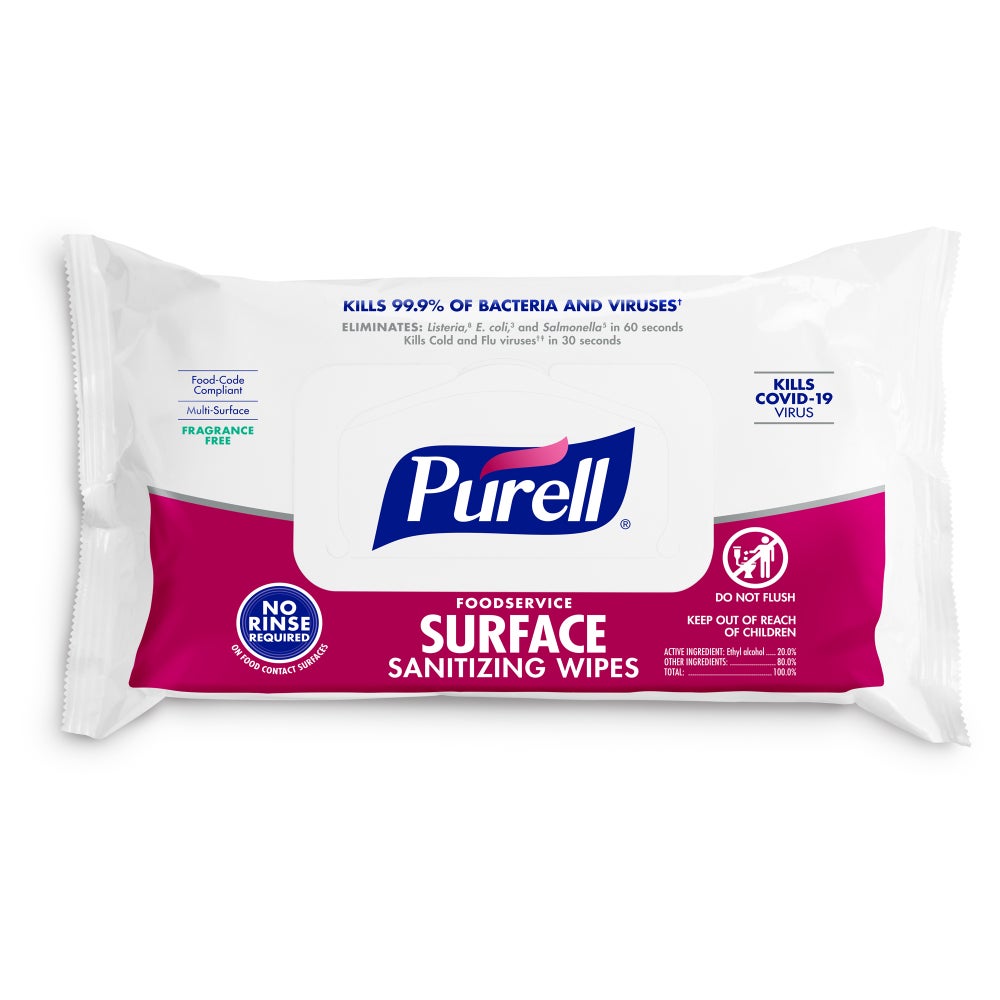Thick, premoistened wipes make it easy to sanitize and disinfect. Foodservice Surface Sanitizing Wipes make it easy to quickly kill 99.9% of germs on surfaces without harsh chemicals.