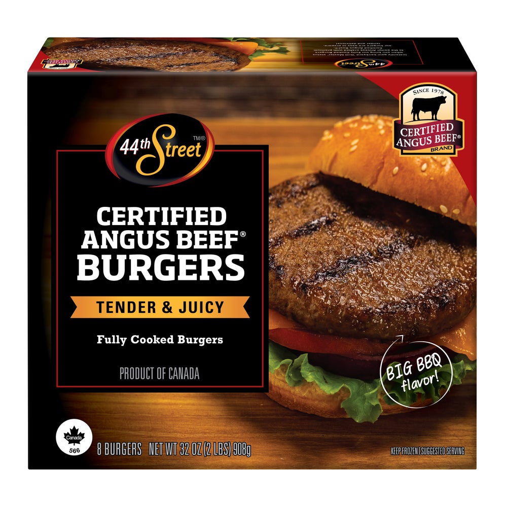 44th Street Angus Cooked Beef Patties, 2 Lb Package, 8/Case