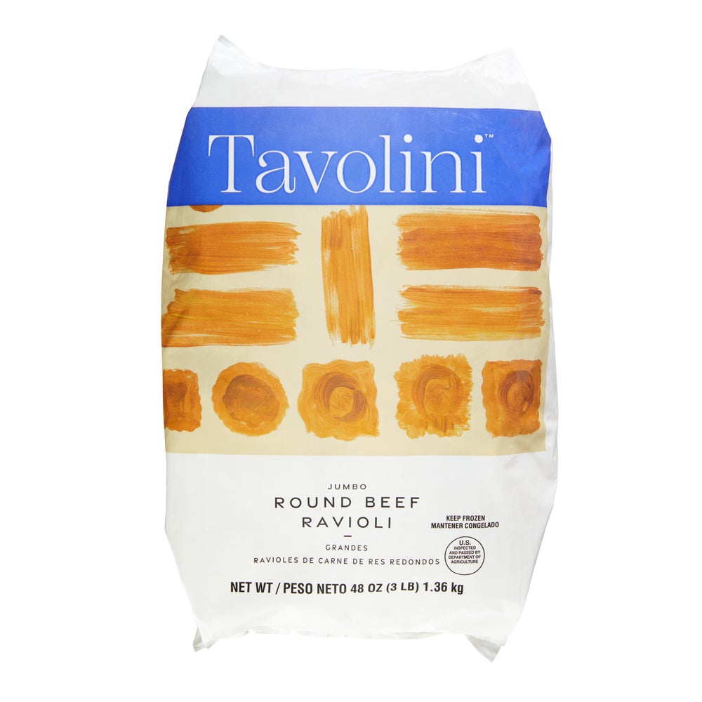 Tavolini Jumbo Beef Ravioli Pasta, Cooked, Frozen, 3 Lb Bag, 4/Case