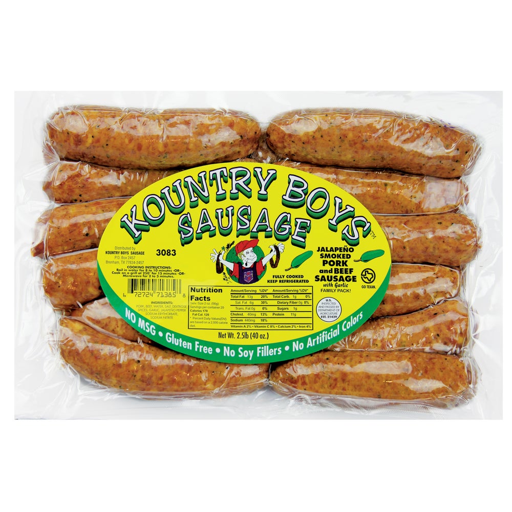 Kountry Boys Smoked Jalapeno Pork/Beef Sausage, 2.5 Lb Package, 8/Case