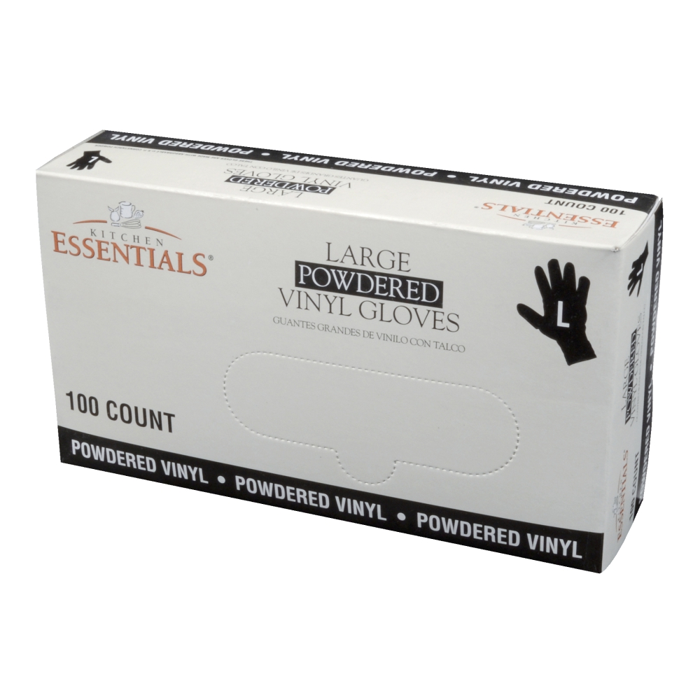 Gloves, Vinyl, Large, Powdered, Clear, 100 Ct Box