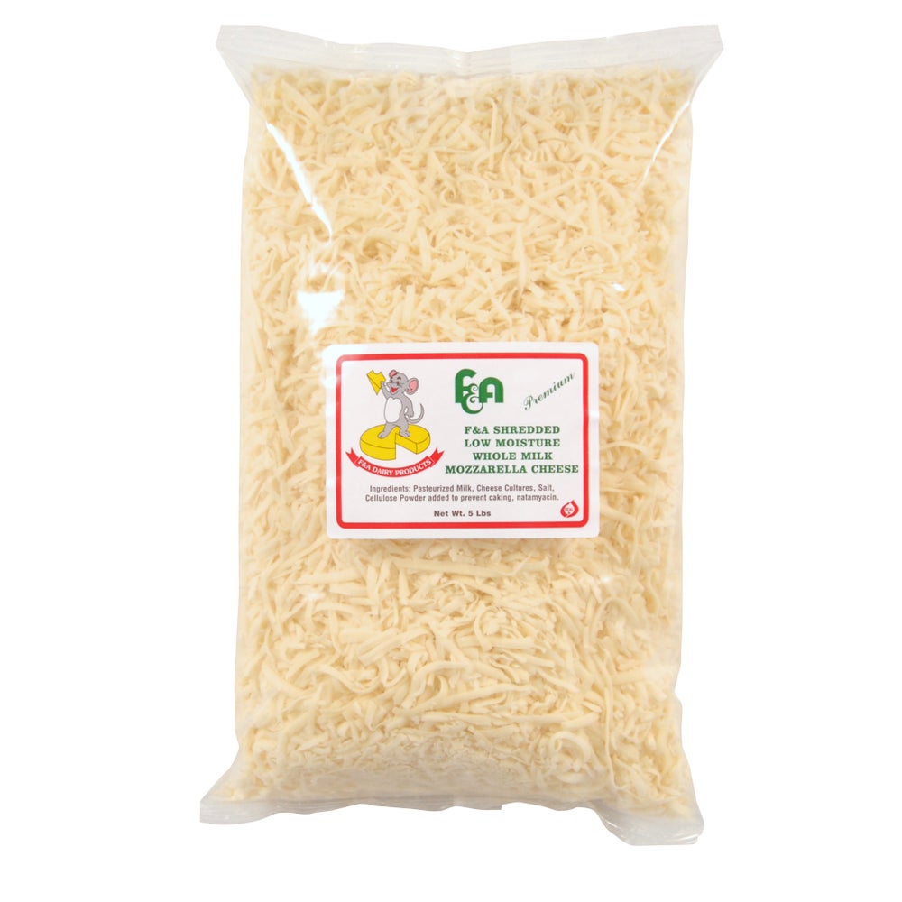 F&A Whole Milk Mozzarella Cheese, Feather Shredded, 5 Lb Bag, 6/Case