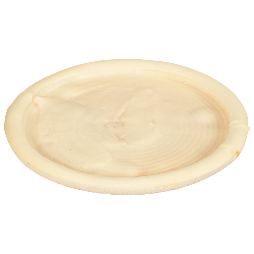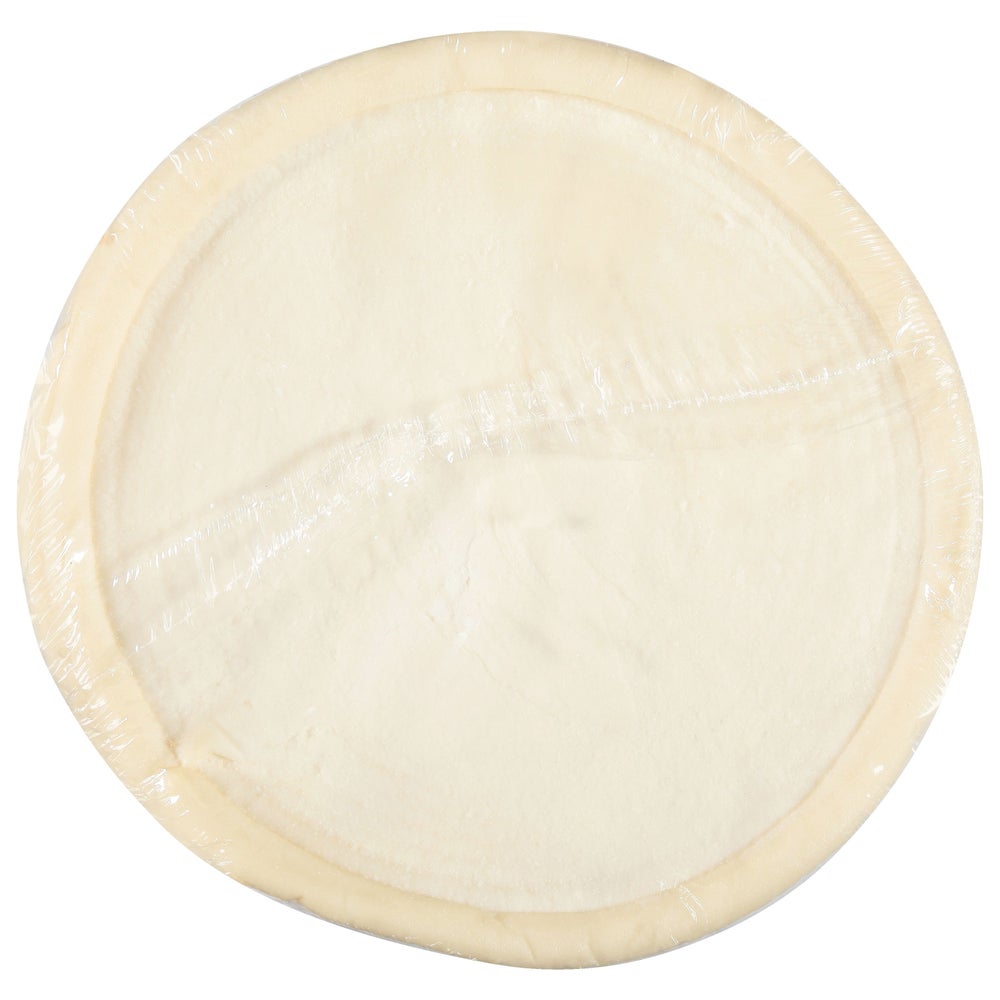 A par-baked crust prepared using high protein wheat product. Product has a light baked color with no toast marks on top and no grill marks on the bottom.