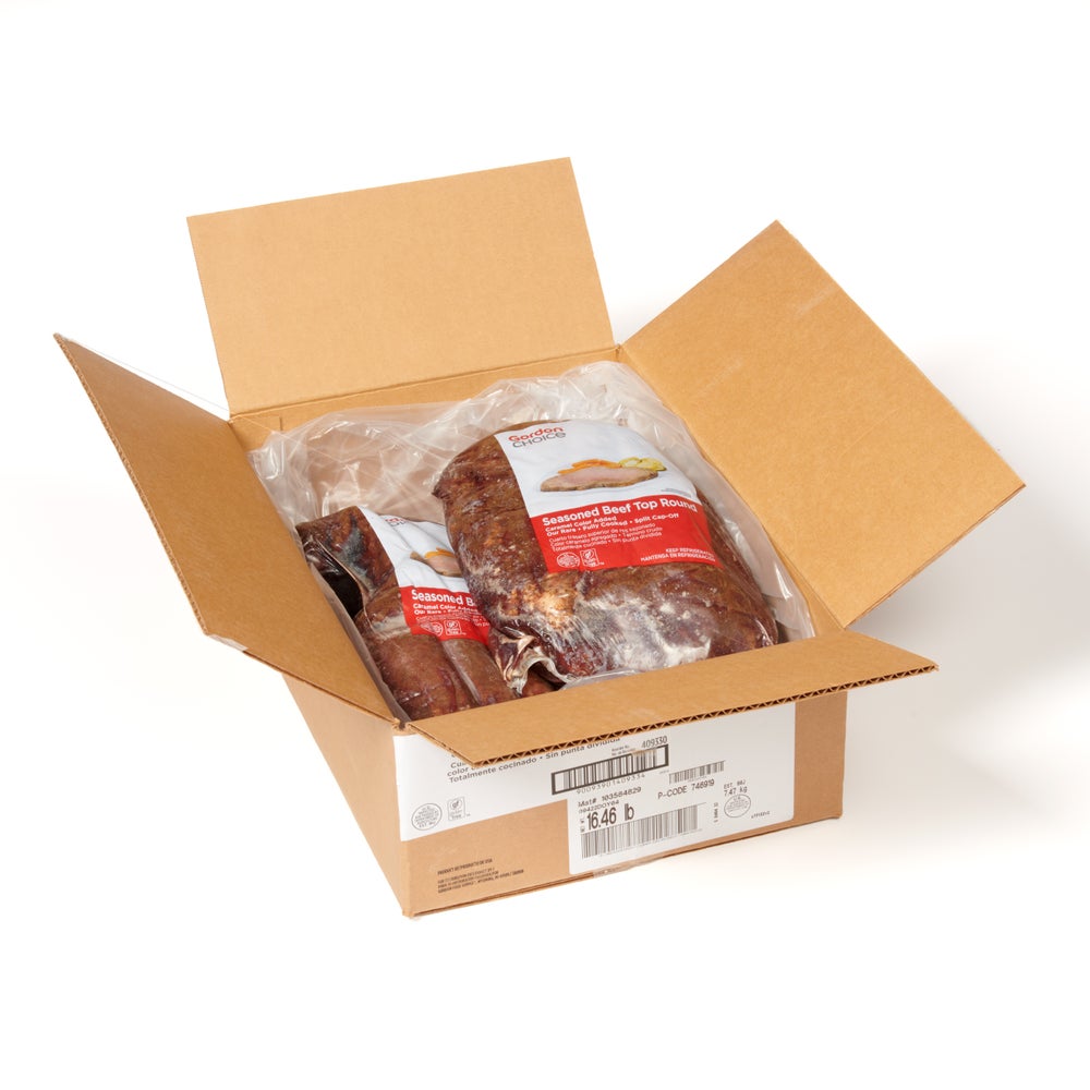- Fully cooked to rare and ready to slice resulting in reduced labor costs and product waste. The top rounds are cap muscle-off for higher slicing yields and consistent portion size.