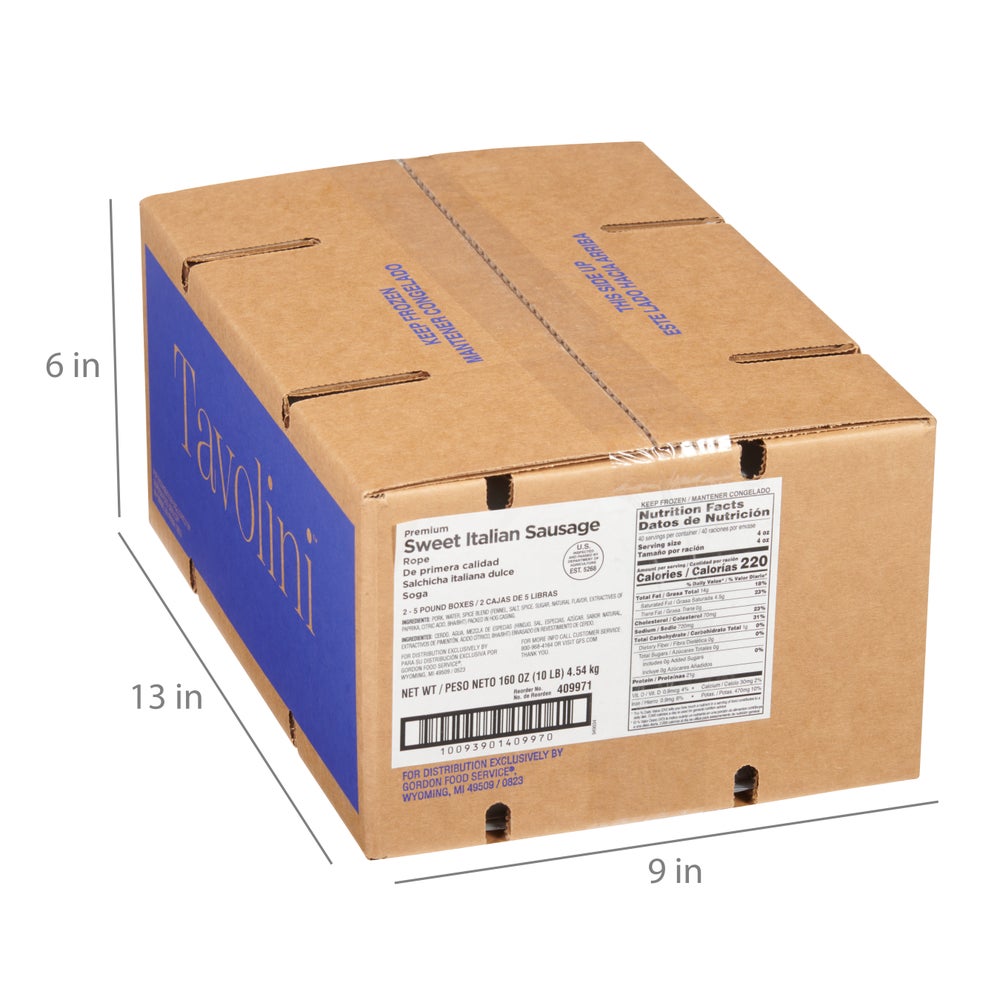 Tavolini - Premium Sweet Italian Pork Sausage, Rope, Frozen, 5 Lb Box, 2/Case