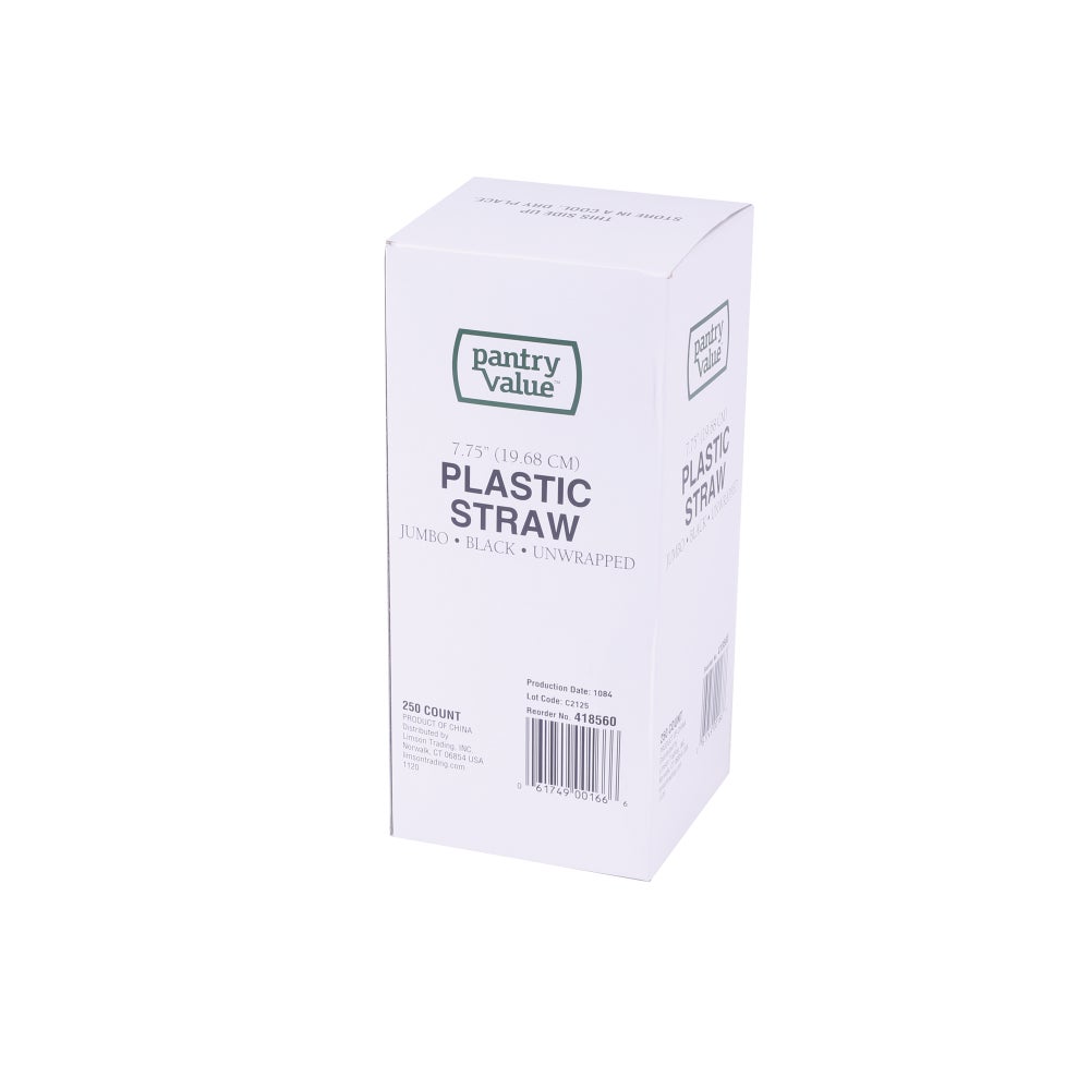 Pantry Value 7.75 Inch Plastic Jumbo Straws, Black, Polypropylene, 250 Ct Package, 50/Case
