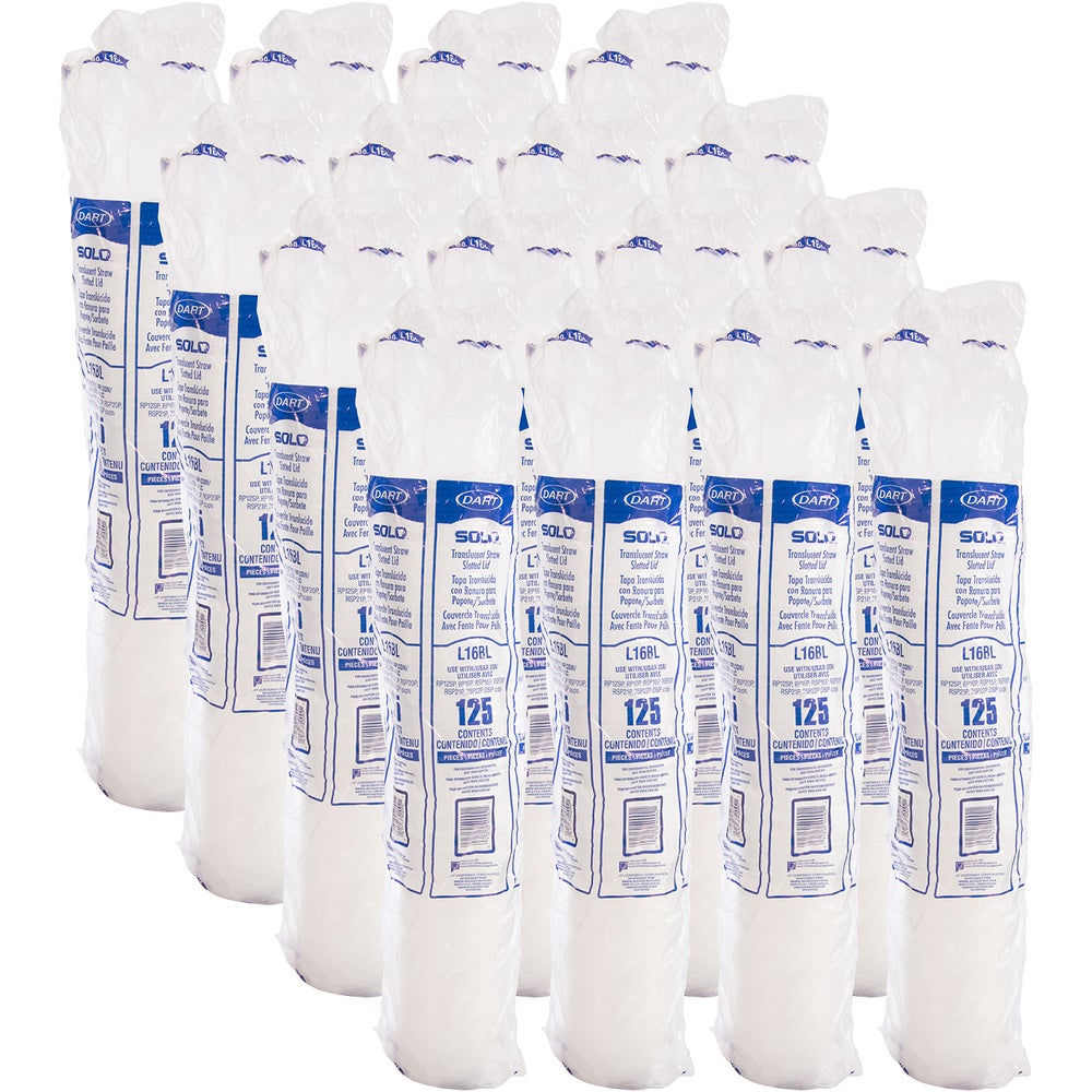 Solo X-Slot Plastic Lids, Translucent, Polystyrene, for 12/14/16/20/22 Ounce Cups, 125 Ct Package, 16/Case