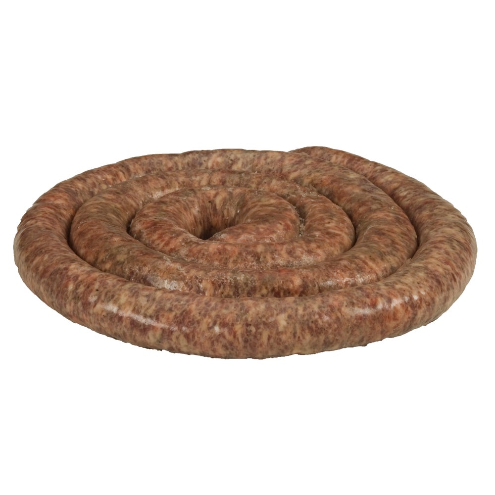 This sausage has a traditional sweet Italian taste and aroma. It is made from premium cuts of pork with no fillers and has a coarse grind for great texture. The continuous natural hog casing gives a good snap to each bite.