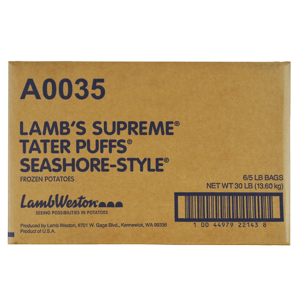 Lamb's Supreme Seashore-Style Tater Puffs, Frozen, 5 Lb Bag, 6/Case