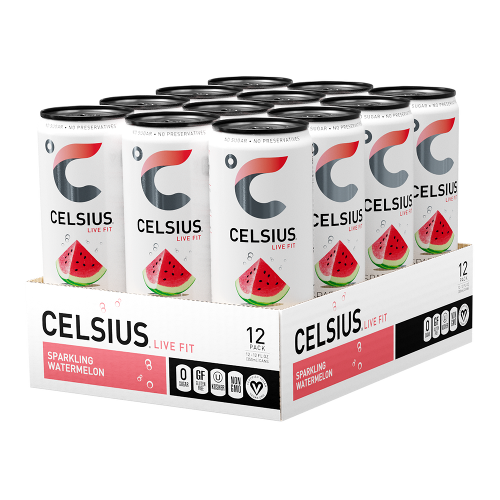 Celsius Sparkling Watermelon Energy Drinks, Single-Serve, 12 Fl Oz Can, 12/Case