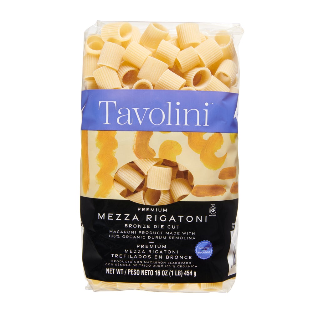 Tavolini - Premium Rigatoni Mezza Pasta, Bronze Cut, 1 Lb Package, 12/Case