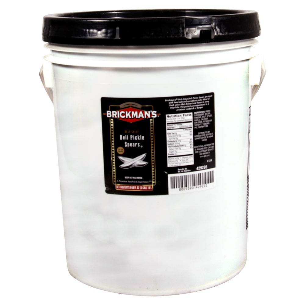 Brickman's Kosher Dill Pickle Spears, 275-325 Count, Refrigerated, Plastic, 5 Gal, 1/Pail