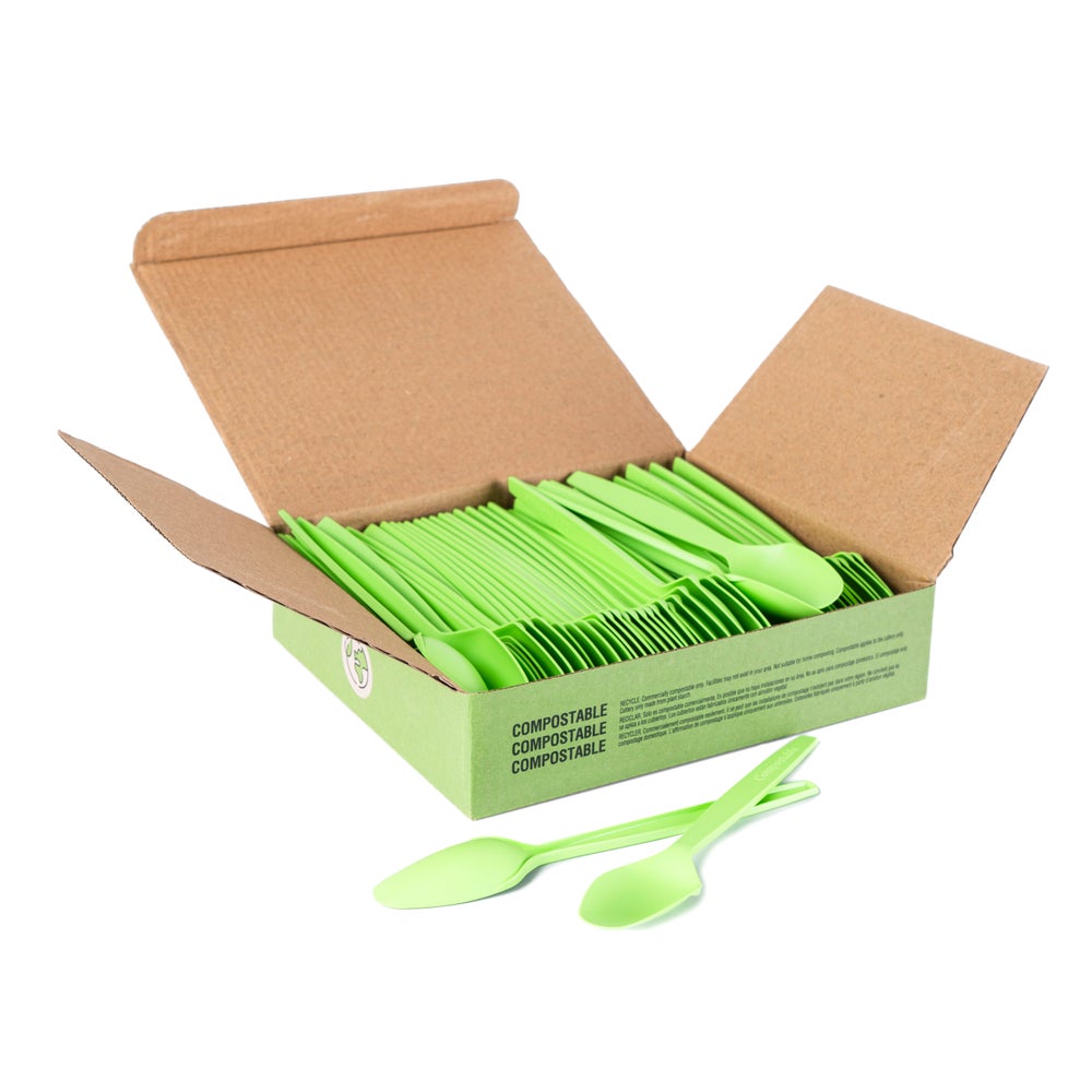 Re.Source Plastic Spoons, Green, CPLA, Compostable, 100 Ct Package, 10/Case
