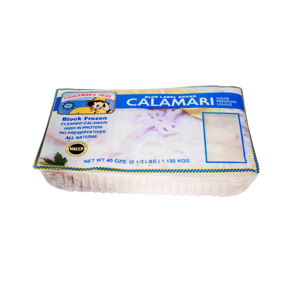 Fisherman's Pride Loligo Squid Tubes & Tentacles, Traditionally Cleaned, 5-8 Inch, Raw, Frozen, 2.5 Lb Package, 4/Case