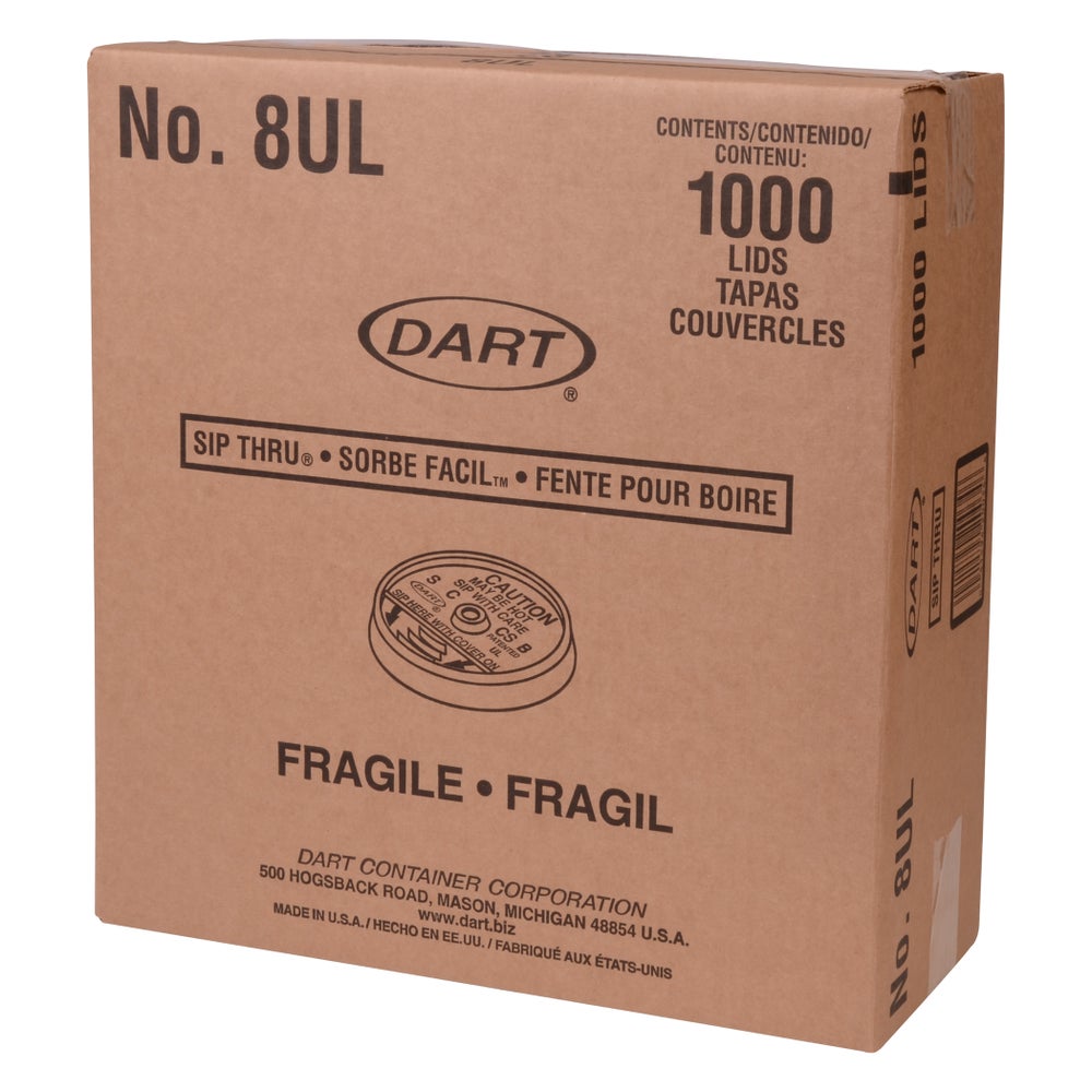 Dart Sip-Thru Plastic Lids, White, Polystyrene, for 8 Ounce Cups, 100 Ct Package, 10/Case