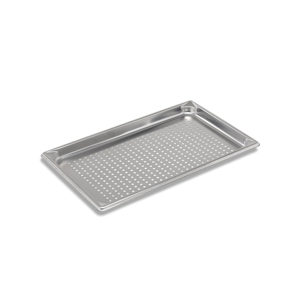 This Super Pan V perforated steam table pan allows rendered fat, juices, and moisture to drain away from food, and helps to maintain the desired texture, flavor, and presentation. Drain holes are on the bottom of the pan only.