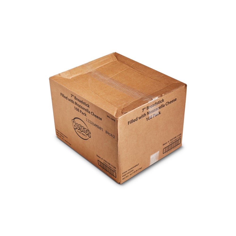 Bosco's Mozzarella Cheese-Stuffed Breadsticks, 7 Inch, Parbaked, Frozen, 3 Ounce, 108 Ct Bag, 1/Case