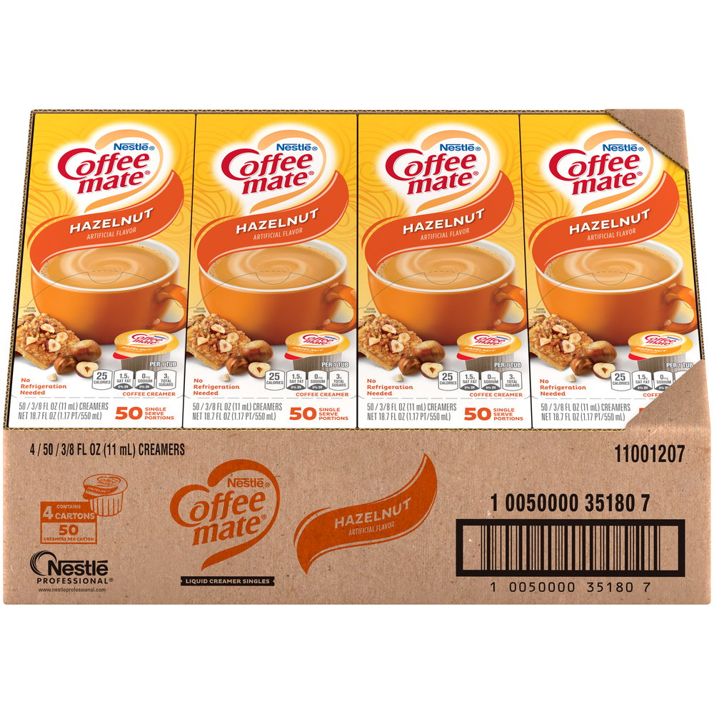 Nestle Hazelnut Non-Dairy Liquid Creamer Cups, Shelf-Stable, Single-Serve, 50 Ct Box, 4/Case