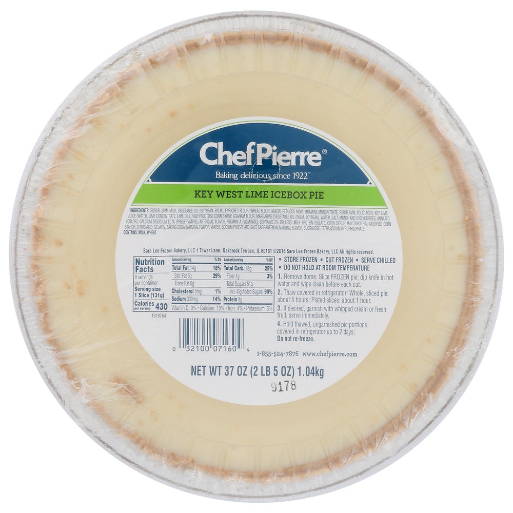 Chef Pierre 10 Inch Key West Lime Pies, Untopped Icebox, Frozen, 37 Oz Each, 6/Case