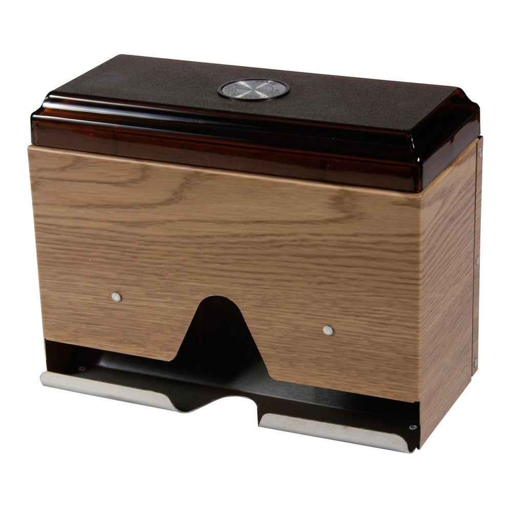 The patented one-at-a-time dispensing mechanism reduces waste, while the heavy-gauge metal walls and light oak- grain finish ensures durability.