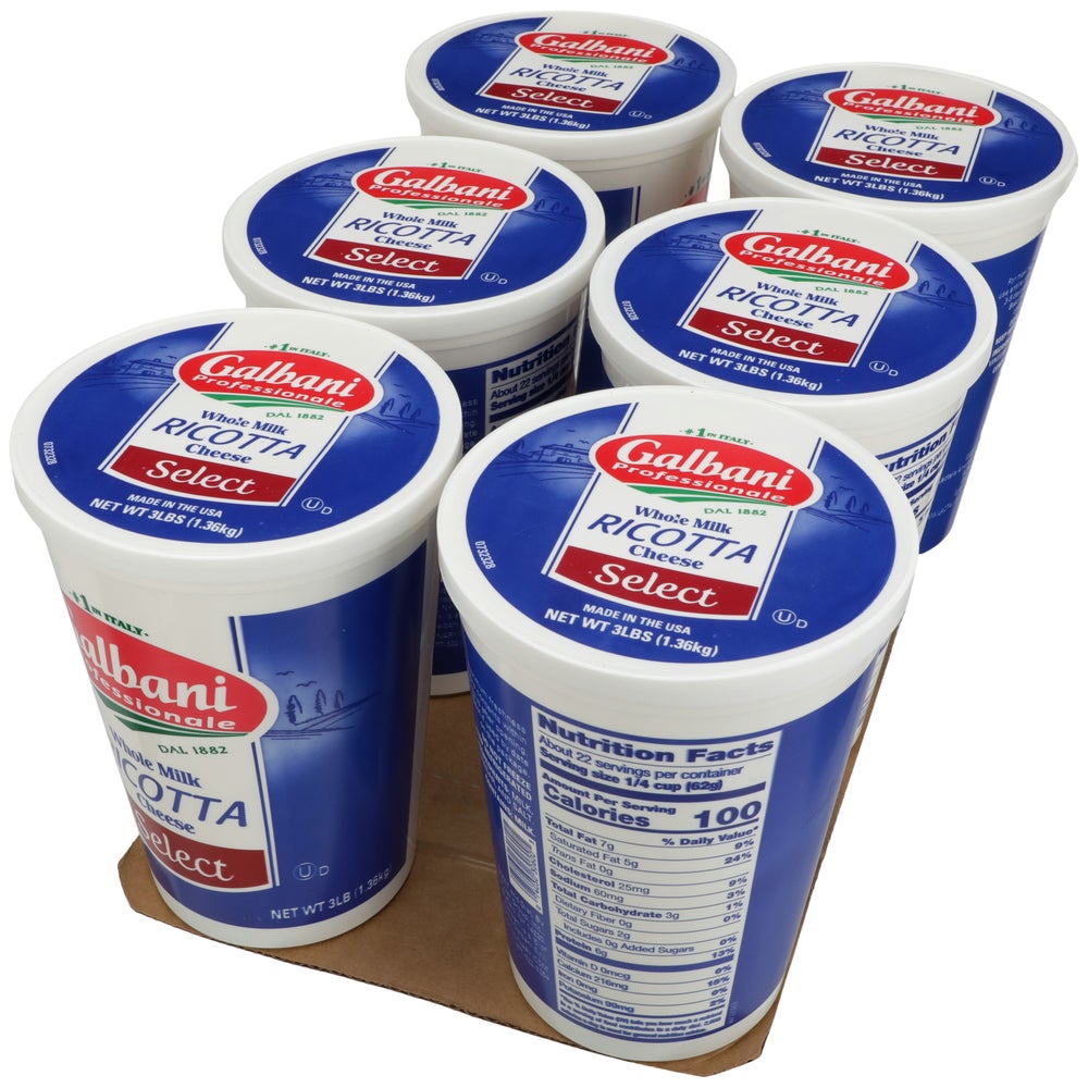 Packer Label Whole Milk Ricotta Cheese, 3 Lb Tub, 6/Case