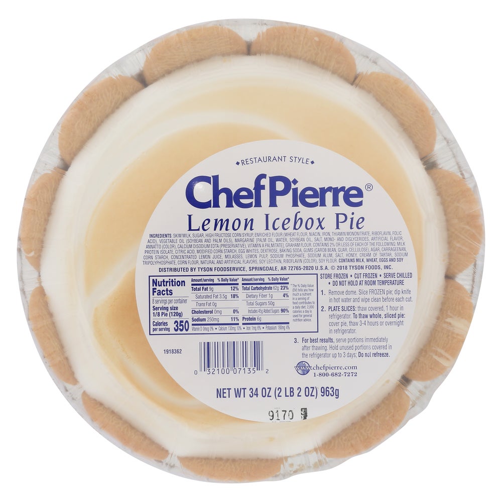 Chef Pierre 10 Inch Icebox Condensed Lemon Pies, Frozen, 10 Inch Each, 6/Case