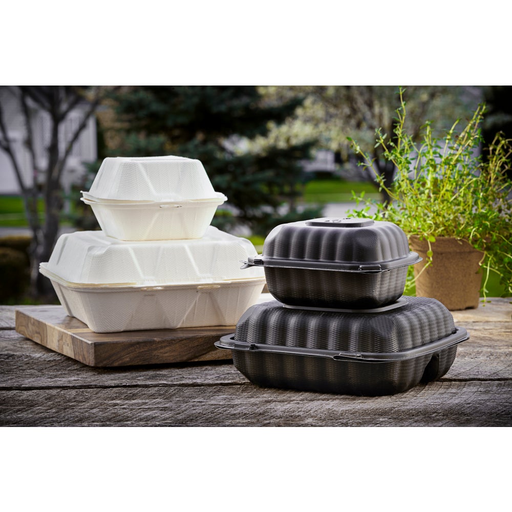 Earthchoice 9 x 9 Inch 1-Compartment Containers, Black, Hinged, Mineral Filled Polypropylene, 120 Ct Package, 1/Case