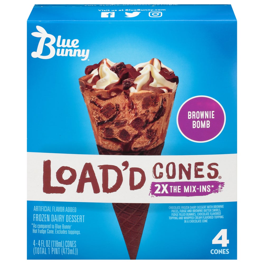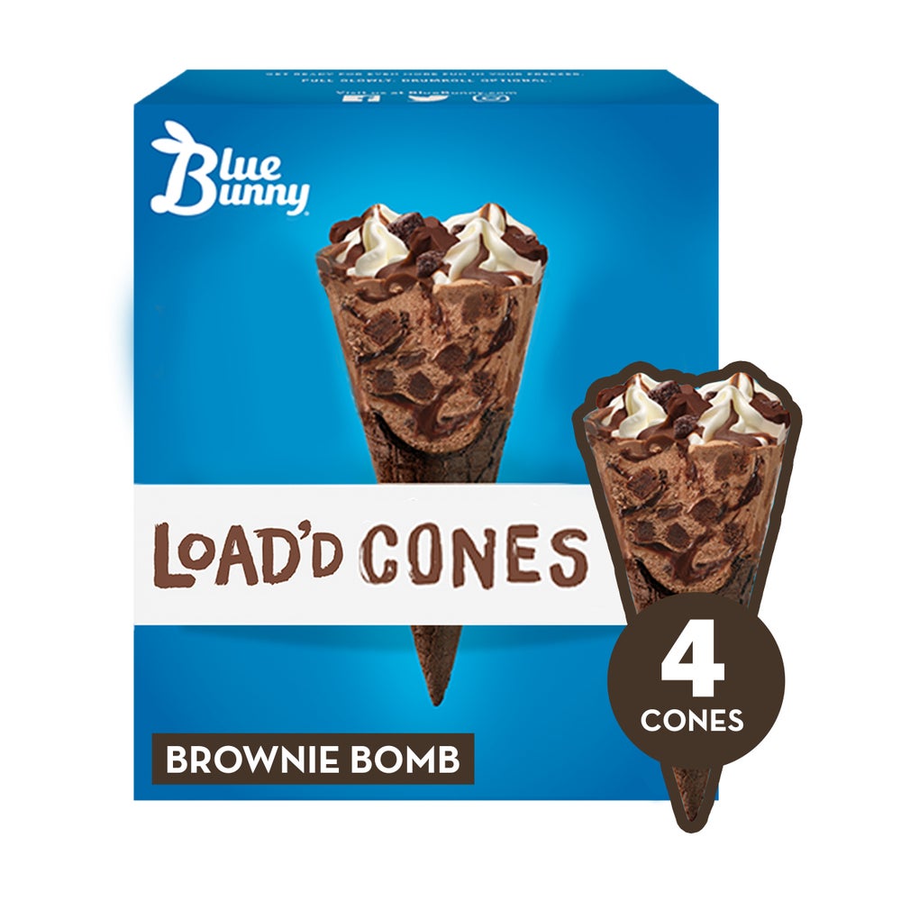 Wells Blue Bunny Chocolate Brownie Ice Cream Cones, Frozen, 4 Ct Box, 6/Case