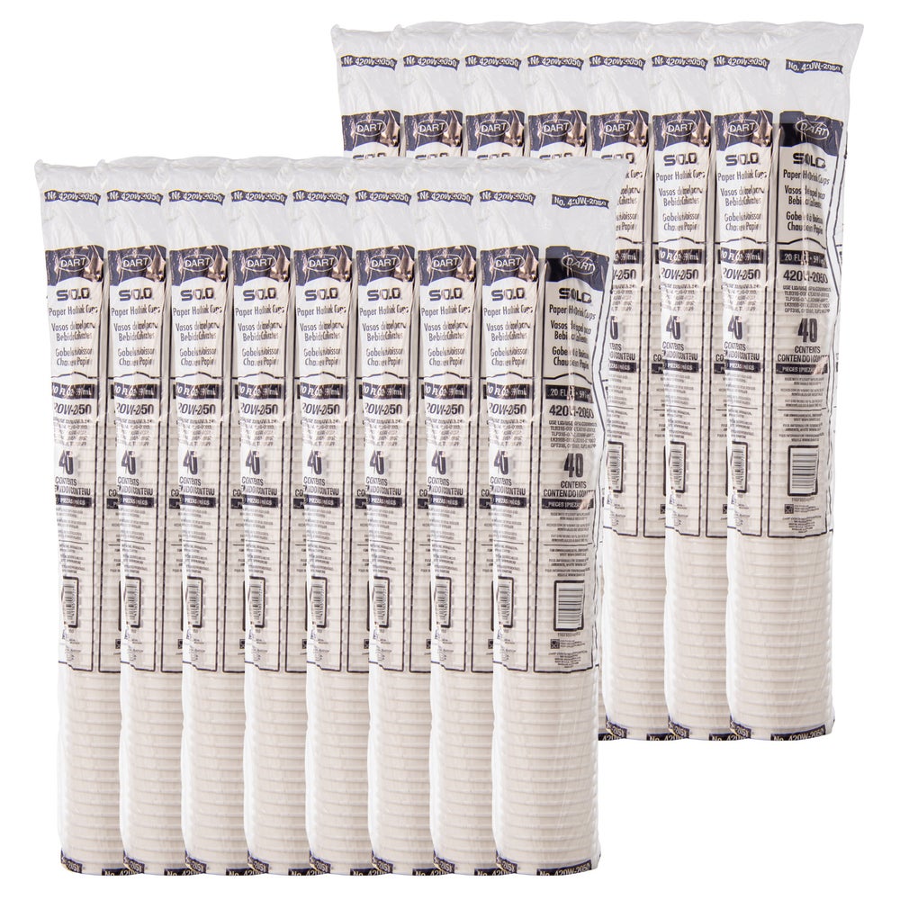 Solo 20 Ounce Paper Hot Cups, White, Poly-Coated, 40 Ct Package, 15/Case