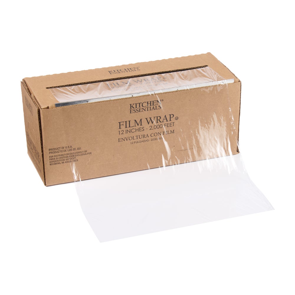 Kitchen Essentials 12 Inch Cling Wrap Film Roll, Clear, in Cutter Box, 2000 Foot Each, 1/Roll