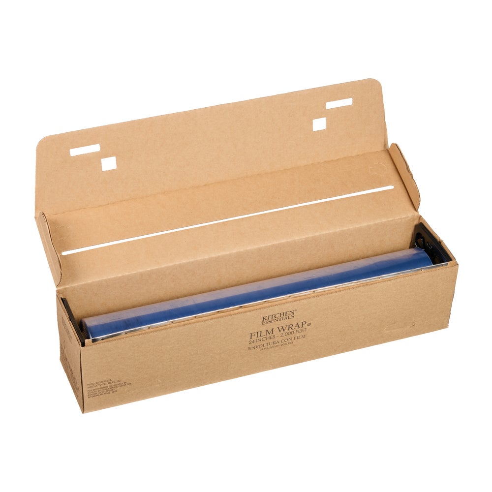 Kitchen Essentials 24 Inch Cling Wrap Film Roll, Clear, in Cutter Box, 2000 Foot Each, 1/Roll