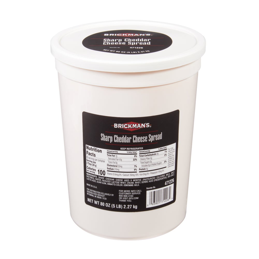 Brickman's Sharp Yellow Cheddar Cheese Spread, Refrigerated, 5 Lb Tub, 4/Case