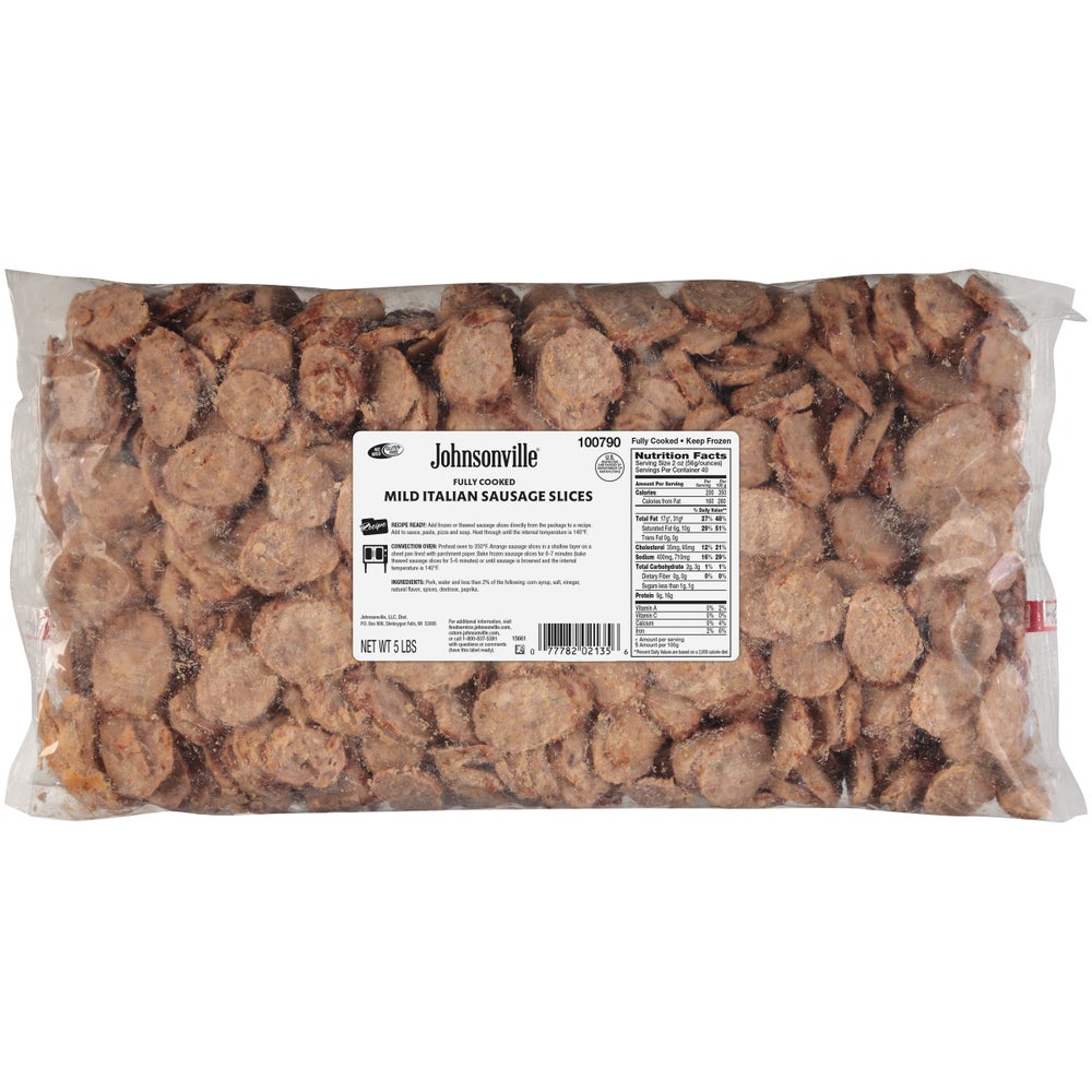 Johnsonville Italian Pork Sausage, Slices, 1/4 Inch Bias, Cooked, Frozen, 5 Lb Bag, 2/Case