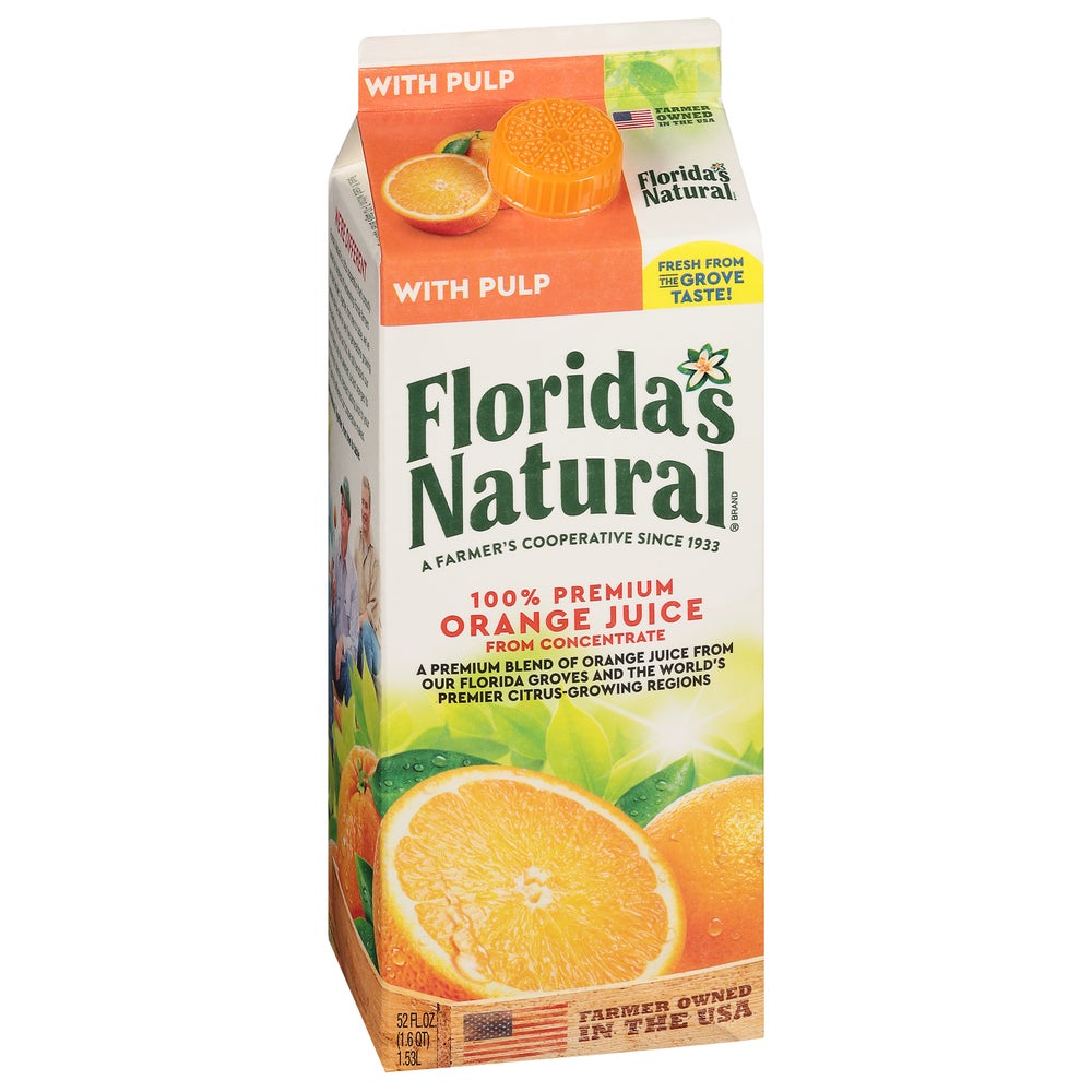 Florida's Natural 1.0 Orange Juice, with Pulp, Refrigerated, 52 Fl Oz Carton, 8/Case