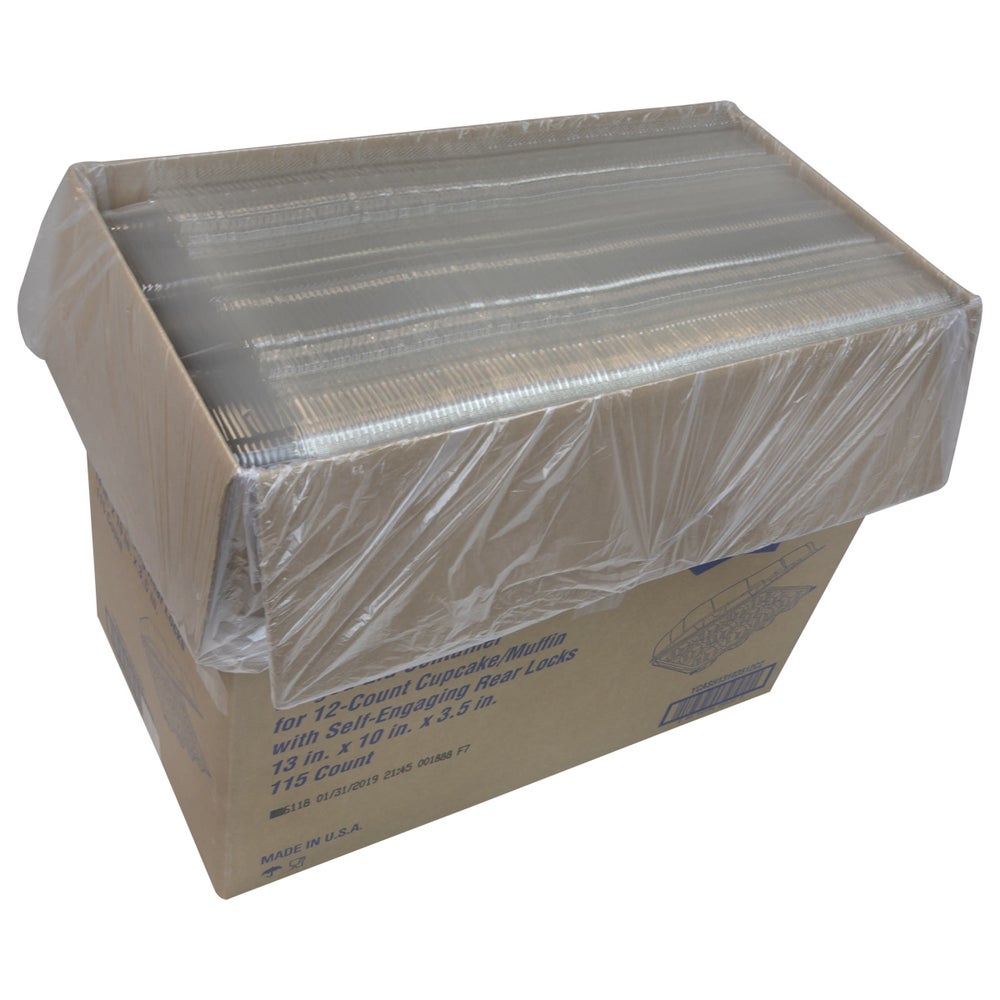 Pactiv Plastic 12-Compartment Cupcake Containers, Clear, Hinged, 115/Case