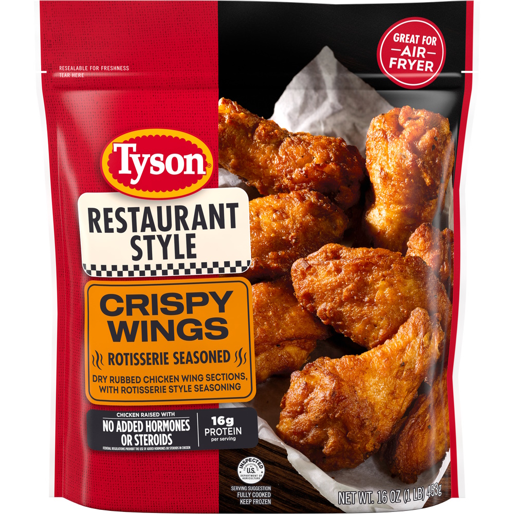 Tyson Chicken Wings, Bone-In, Cooked, 1 Lb Bag, 8/Case