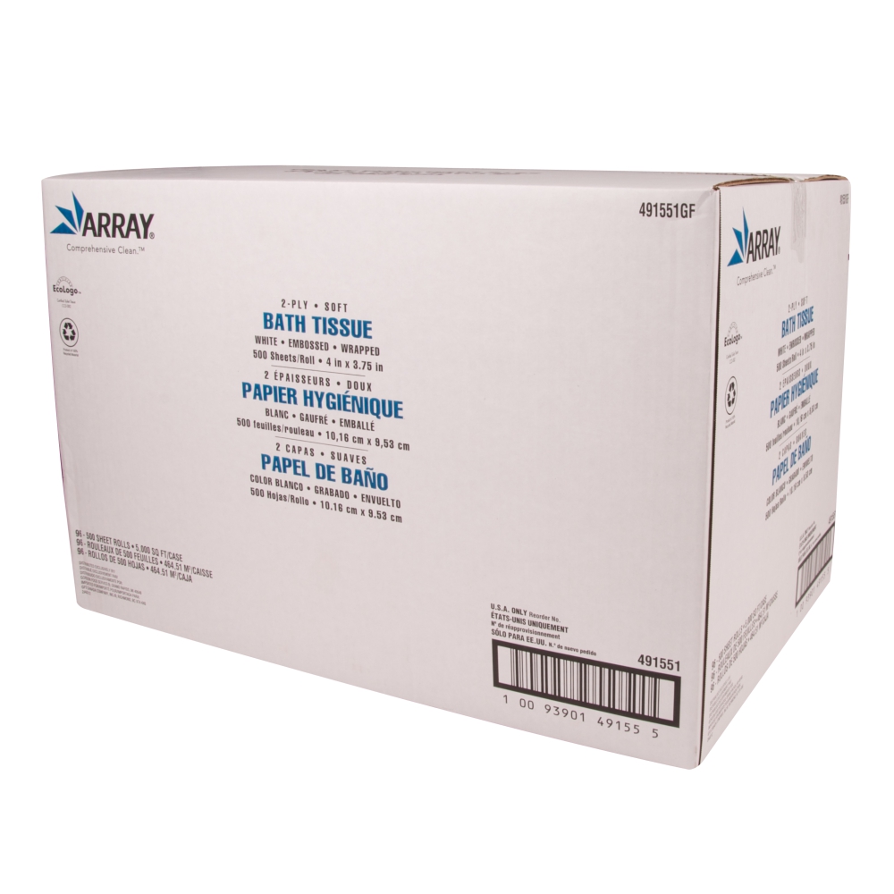 Toilet Tissue, Standard Roll, 2-Ply, Embossed, White, 4 x 3.75 Inch Sheets, Individually Wrapped, 500 Ct Roll, 96 Per Case