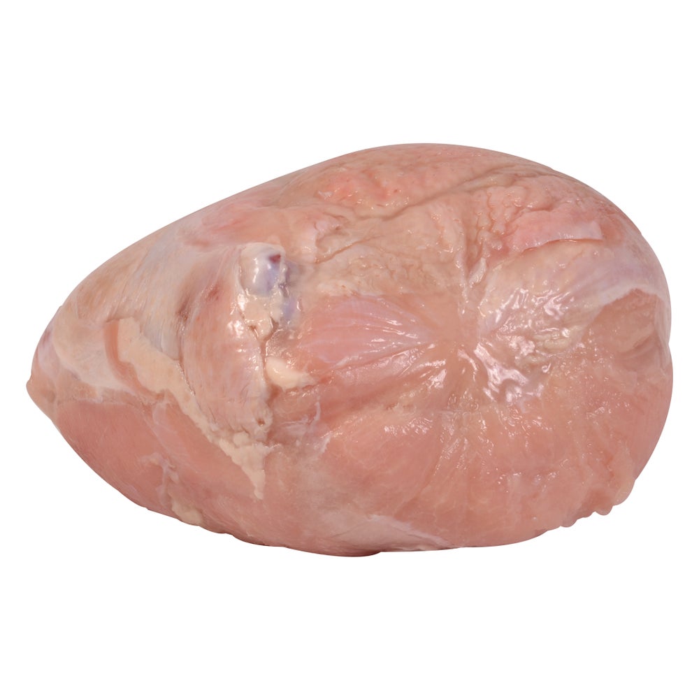 These skin-on, boneless turkey breast halves feature the first wing joint attached, offering a natural look ideal for carving stations.